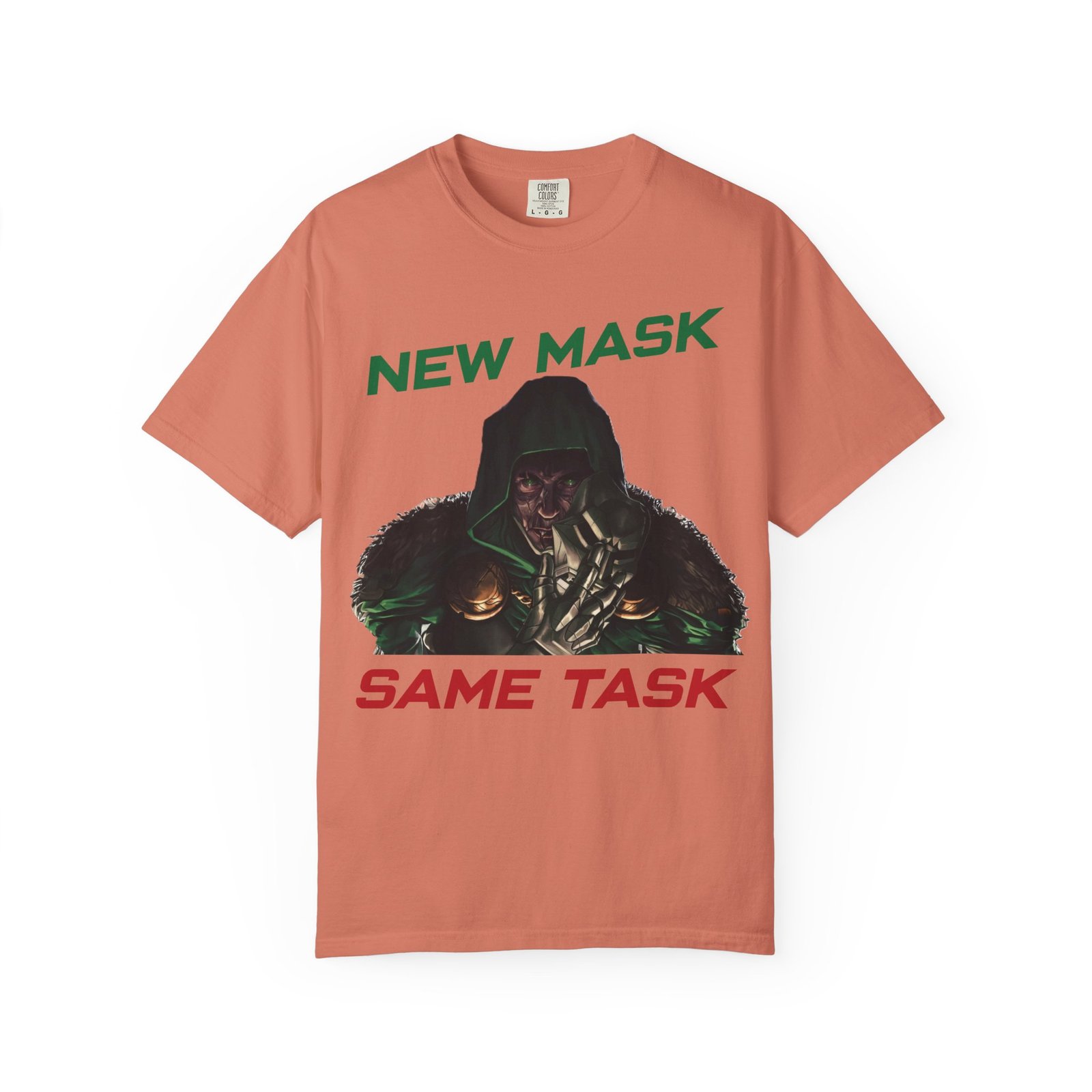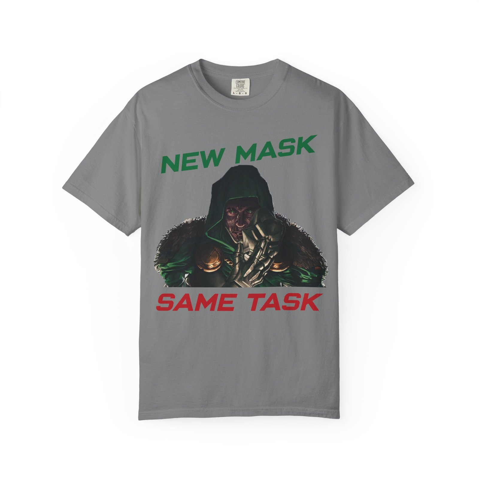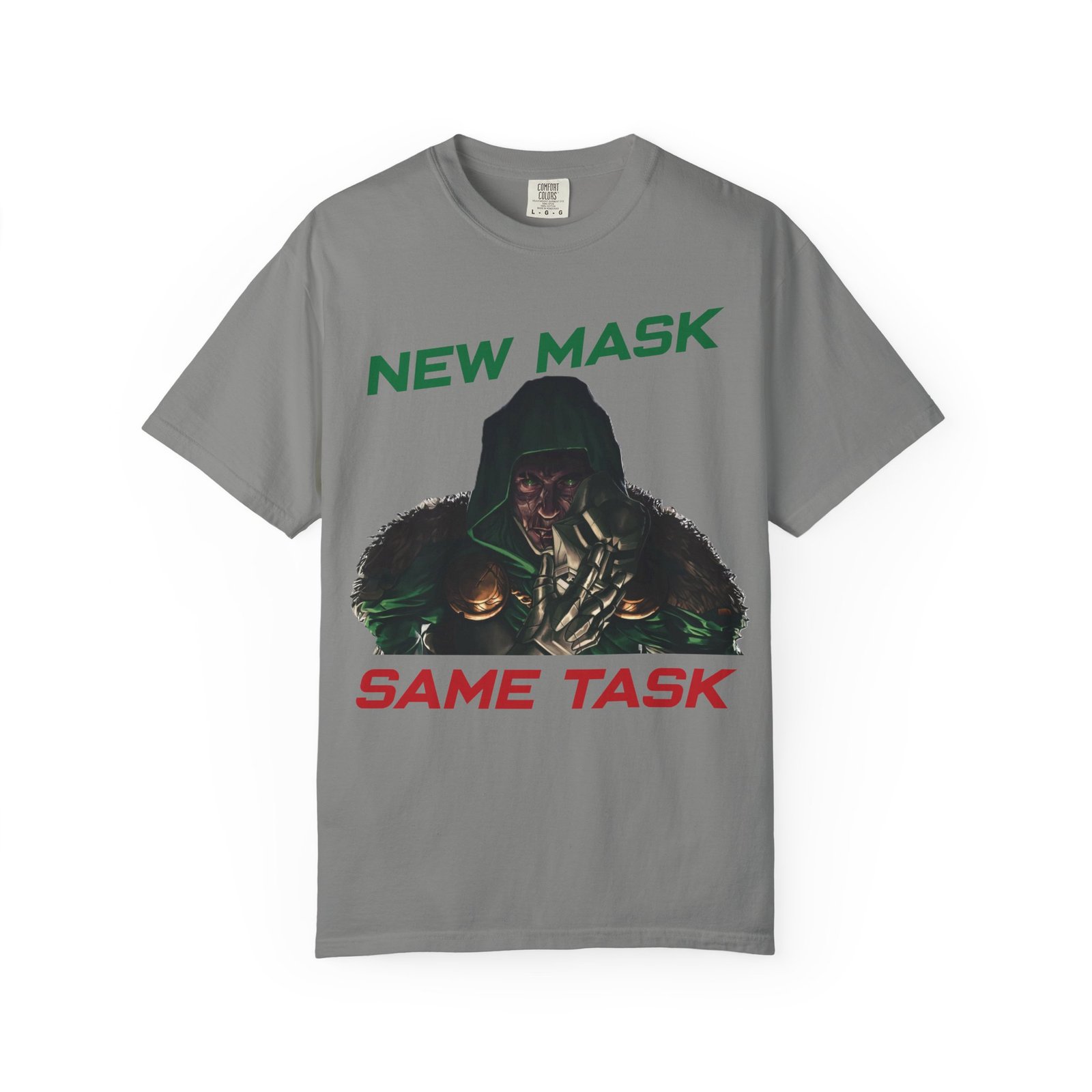 This Marvel-inspired graphic t-shirt captures the essence of two iconic forces in the superhero world — the ruthless intelligence of a masked monarch and the high-tech brilliance of a billionaire in armor. Whether you admire the genius of a certain iron-suited Avenger or the dark dominance of a masked ruler, this design is for you.