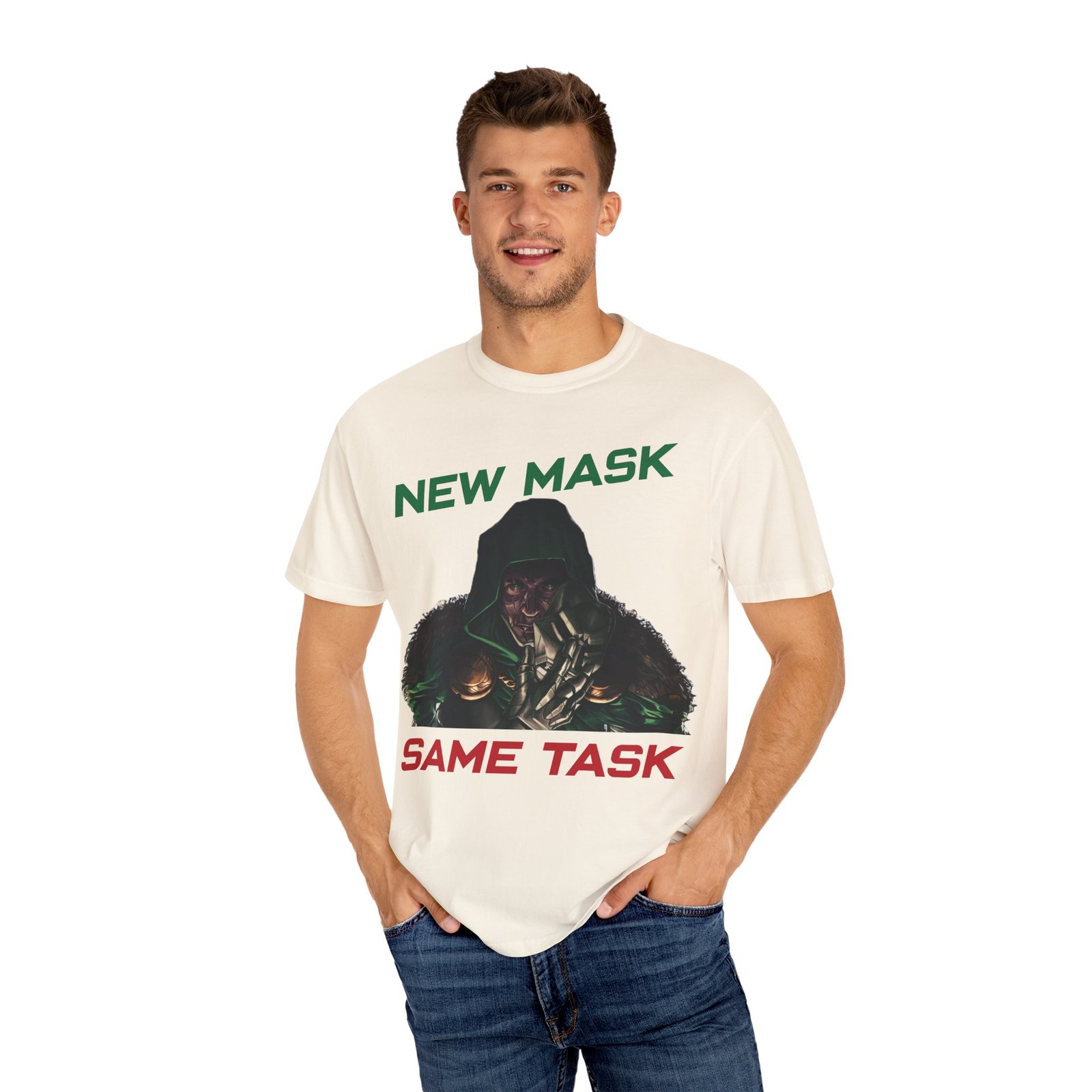 Printed on a premium garment-dyed tee, this shirt offers comfort, durability, and a vintage look perfect for Marvel superfans, gamers, and anyone drawn to power, strategy, and unstoppable ambition.
